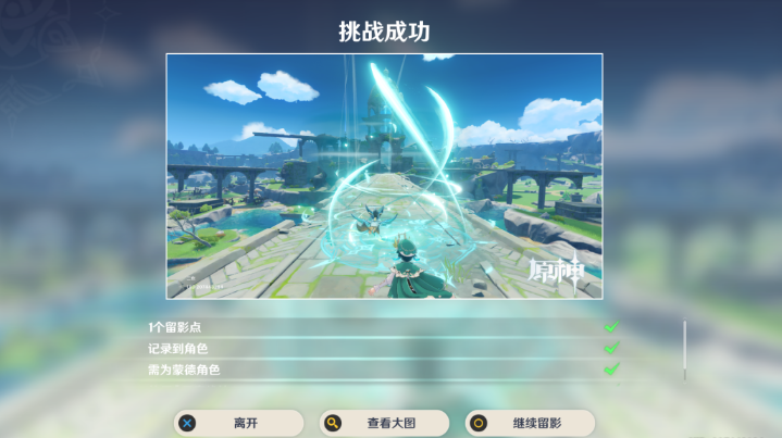 1、查看留影地点,需要前往蒙德拍摄千风神殿。