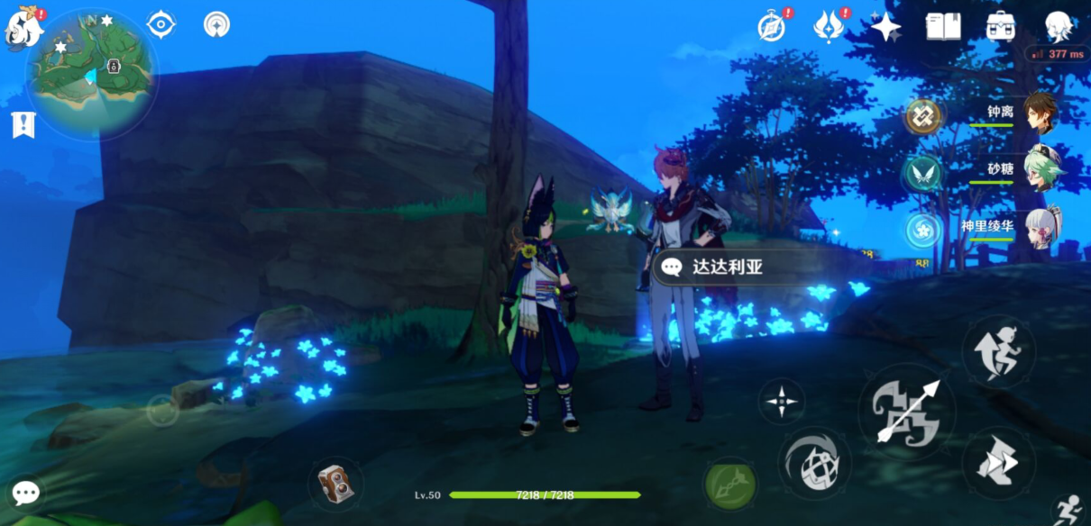 8、传送镇守之森锚点,往西方走,会看到鸭鸭和宵宫,左侧则是拍摄点。(鸭鸭在向宵宫请教稻妻的伴手礼)