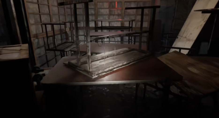 此时赶紧上二楼钻入如图桌子下面,恶鬼会突然出现,这时赶紧往前跑,不要停。