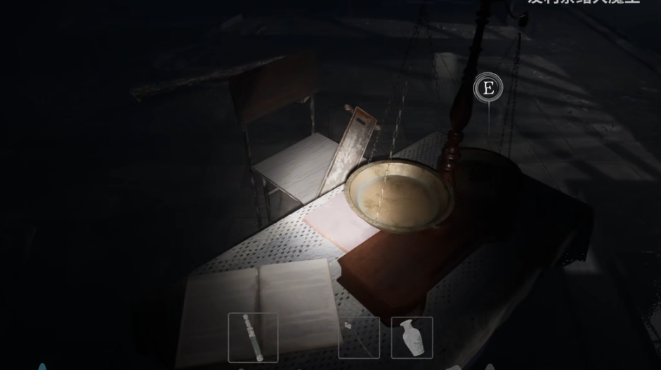 在黑板右边的柜子上有个发簪和把手,把手可以在旁边门外互动获得一瓶液体,再进入门内将发簪和瓶子放到秤上可以得到钥匙。