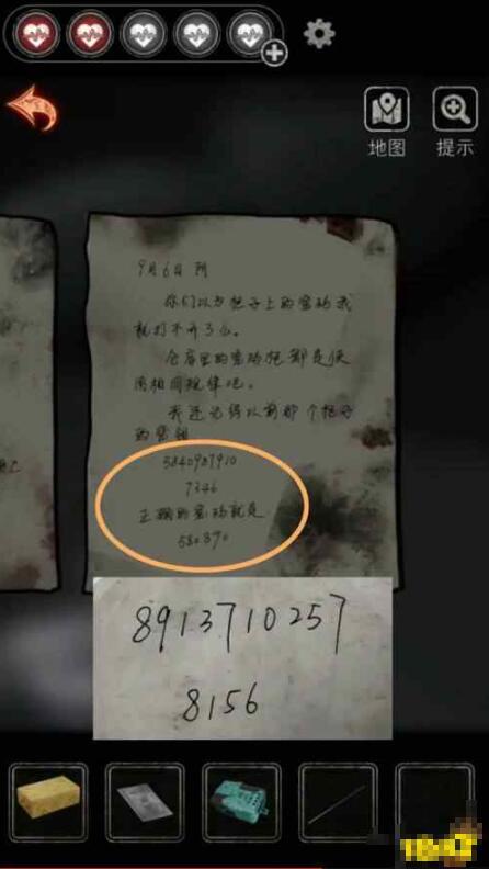 2、我们在心理室,从左边布偶堆,获得说明书和手套,手套绳子我们用指甲刀剪开。把说明书上密码颠倒即可获得按摩椅密码:517658。