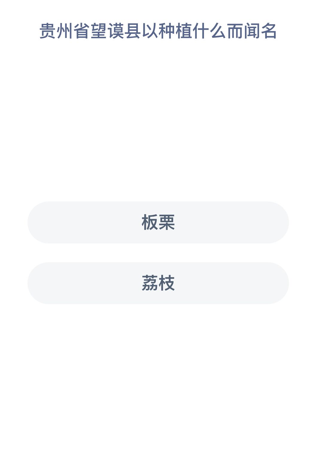 今天蚂蚁新村小课堂的小问题是:贵州省望谟县以种植什么而闻名?相信现在很多人还不知道问题的正确答案,那么下面小编就为大家带来了蚂蚁新村小课堂6月11日正确答案,希望可以对各位有所帮助。
