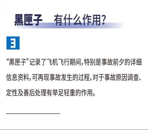 “黑匣子”记录了飞机飞行期间,特别是事故前夕的详细信息资料,可再现事故发生的过程,对于事故原因调查、定性及善后处理有举足轻重的作用。