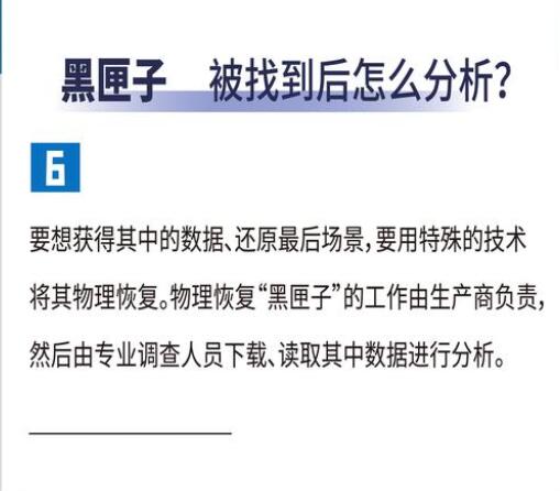 要想获得其中的数据、还原最后场景,要用特殊的技术将其物理恢复。物理恢复“黑匣子”的工作由生产商负责,然后由专业调查人员下载、读取其中数据进行分析。