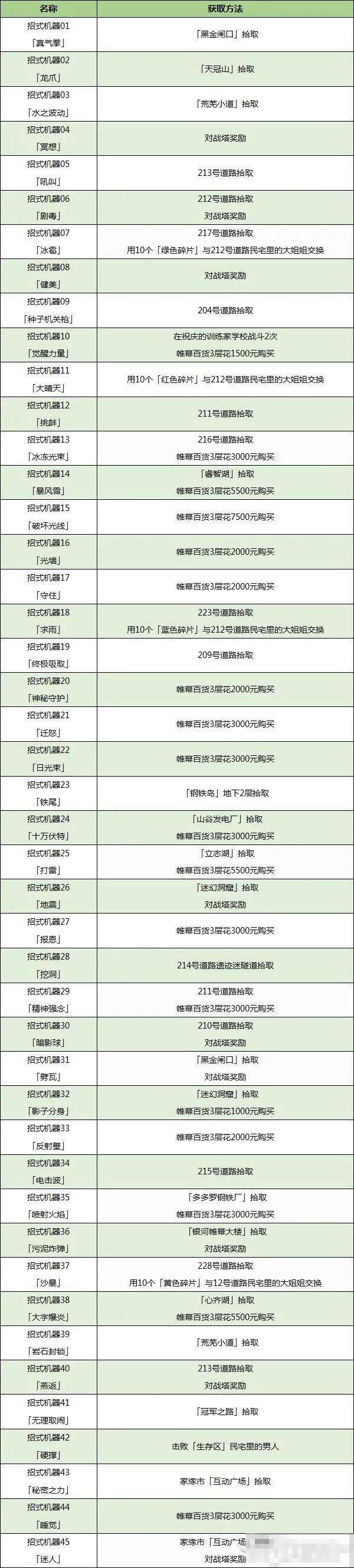 温馨提示:网页端【ctrl+f】搜索关键词查看更方便,因为可能存在的翻译问题,建议大家搜索技能机器编号。
