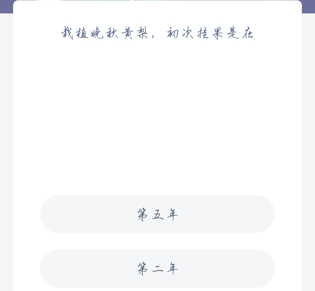 蚂蚁新村小课堂每天都有题目等着大家来回答,回答正确就可以领取到丰厚的奖励,这次位大家带来的是蚂蚁新村小课堂11月16日答案,问题是:栽植晚秋黄梨,初次挂果是在?不知道的小伙伴快来看看吧。