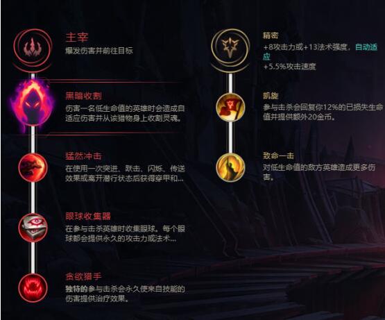主系天赋选择:主宰+黑暗收割+猛人冲击+眼球收集器+贪欲猎手