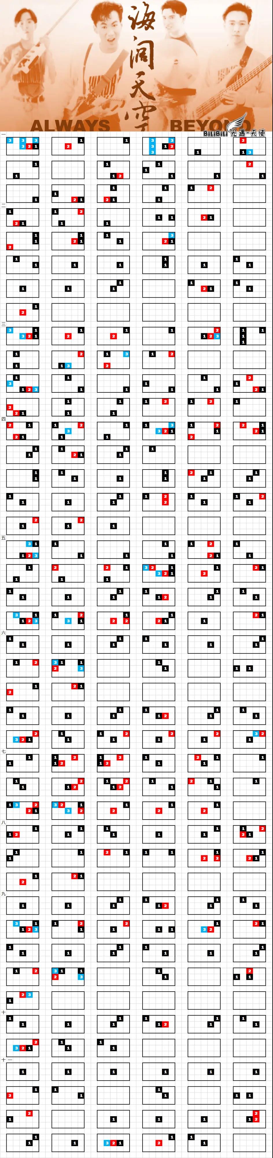 数字图画版:(数字是弹奏的顺序,同一个数字,一起按)