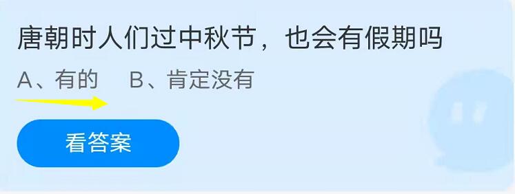 蚂蚁庄园9月21日的问题分别是:唐朝时人们过中秋节也会有假期吗?吃月饼时,搭配下列哪种饮品更好?今天的问题和中秋有关,下面小编给大家带来问题的解答,一起看吧。