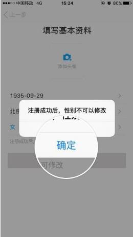 3、上传头像、选择生日和性别,根据系统提示确认性别后点击“确认”