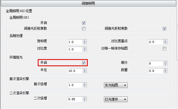 b、高参数:具体视场景而定,紧接下来会有设定方法,一般来说只需改变图像输出、图像采样器、发光贴图和灯光缓存的参数。