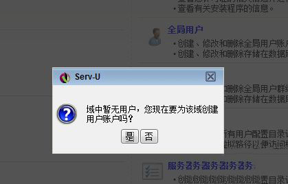 1、安装步骤就不多说了,安装完成之后,打开Serv-U的主页面,我们需要创建一个新的域,这个域我们可以理解成ftp服务存放东西的一个总集