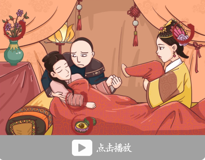3、再去点击床上娘娘的袖口和其旁边的黑色药丸。