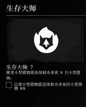 使用小型猎物箭连续射击杀死8只小型猎物。