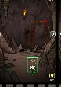 7、用火把烧洞前的藤蔓,反复5次,变得到青铜刀,之后来到有一枯萎的花的地方,要用水壶收集水浇灌,使用长棍捅烂洞顶的缝隙。