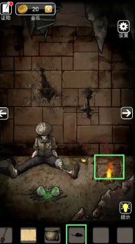 3、之后进入洞穴,按照指引将洞壁上的灯点亮,拾起地上的铲子将洞壁上突出的石头打烂拿到水壶。