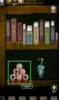 2、地上拿起第二个花瓶,之后点击上方的铜钱,得到灯罩。