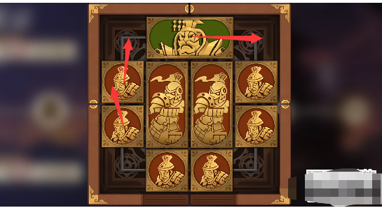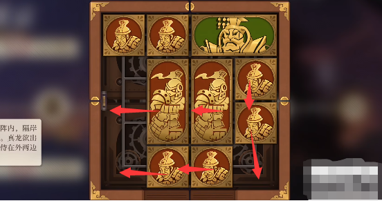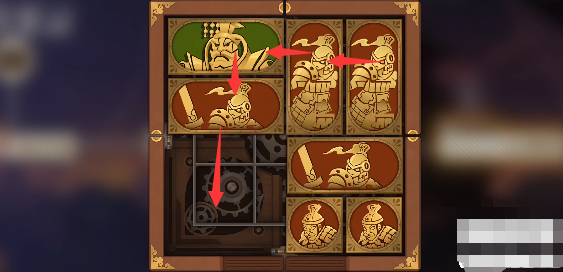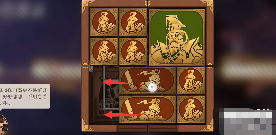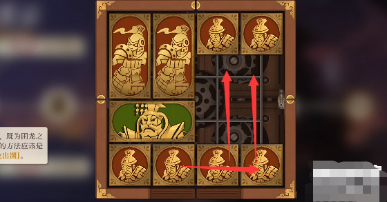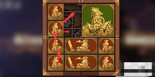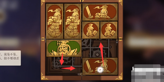 7、把从上到下数第二排的长方形向右移动,它下面的方块向上移动,将军旁边的最下面的长方形向左移动。