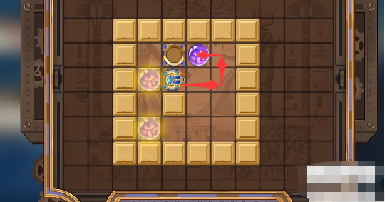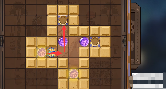 4、然后往右走一格再往上走把珠子推进凹槽处。