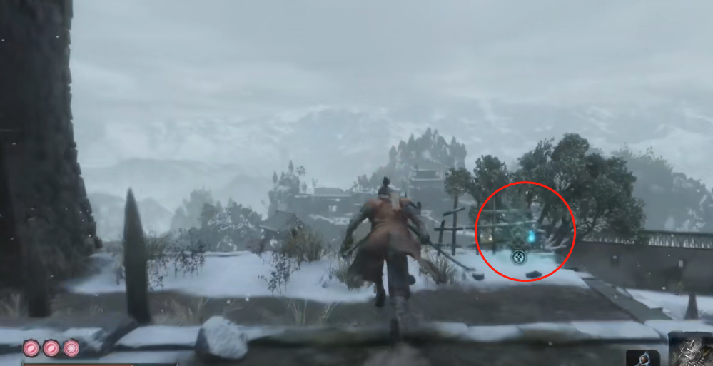 2、然后我们再次回到铁炮要塞,打开铁炮要塞神社大门,并来到如图所示的大桥跳下去。