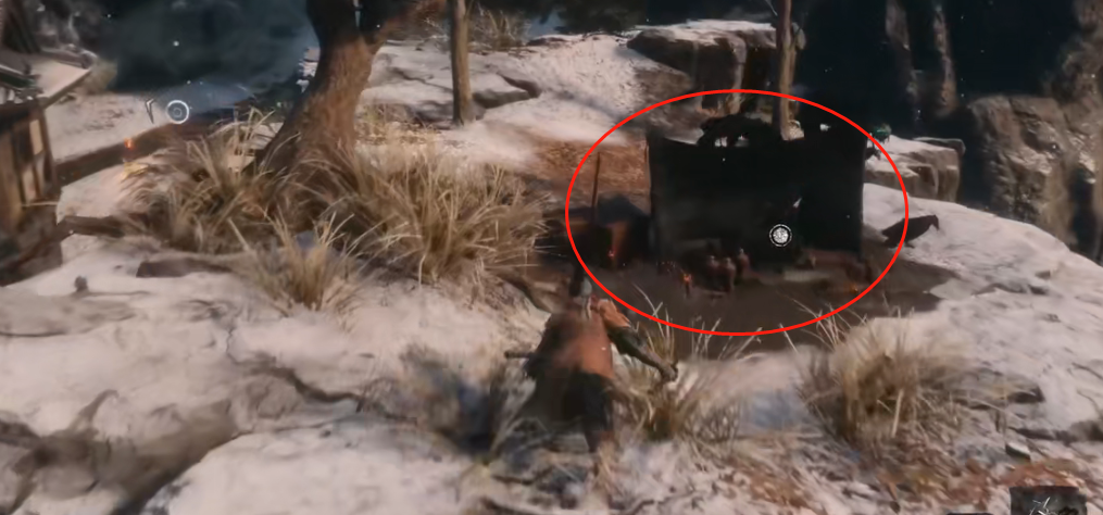 3、最后我们来到如图所示的篝火处,在视野中非常明显,在里面可以拿到吹火筒道具,可以用来制造吹火筒义手。