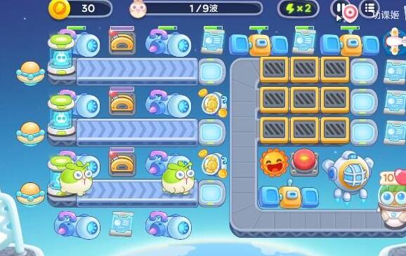 3、然后我们在后排刷怪位置放置泡泡塔,依靠泡泡塔的减速效果阻止兔兔的进攻即可,如图所示。