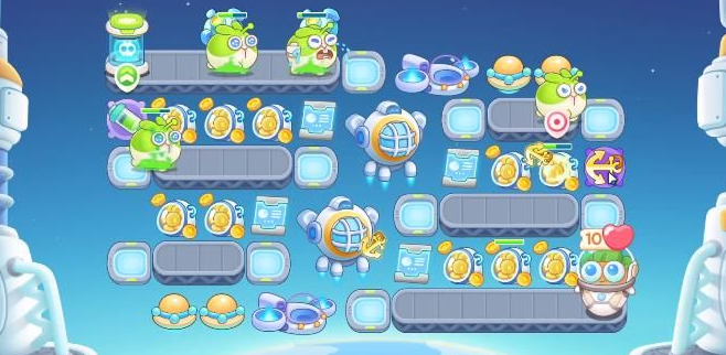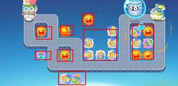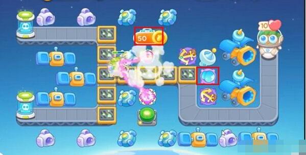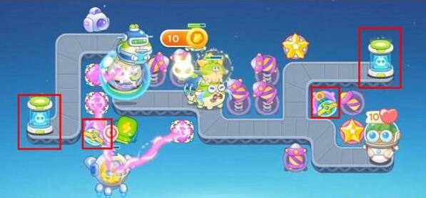 3、飞船兔发起袭击,在终点出放置多个星星,增加输出,具体位置如下。