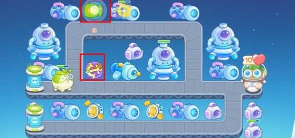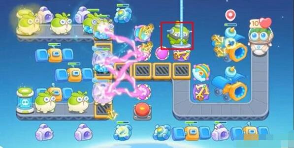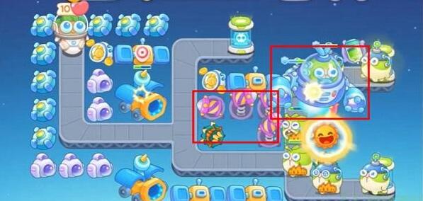 3、然后我们要小心ufo兔兔,防空比较慢,它会将我们的防御塔随机转换到另一位置,如图所示。
