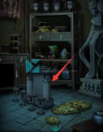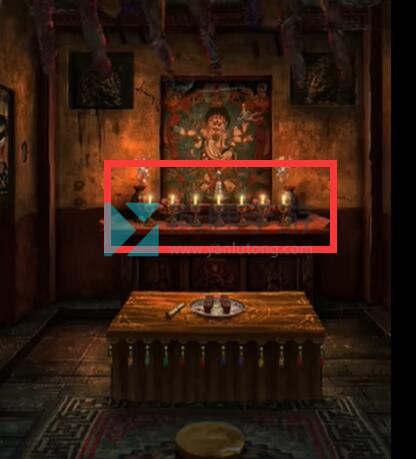 10、掀开挂饰获得天珠手串,在如图位置使用天珠手串开启机关,调整石灯位置得到提示。