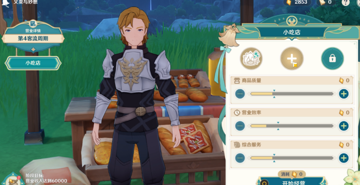 6、小吃店:商品质量分配0;营业效率分配3600;综合服务分配450。