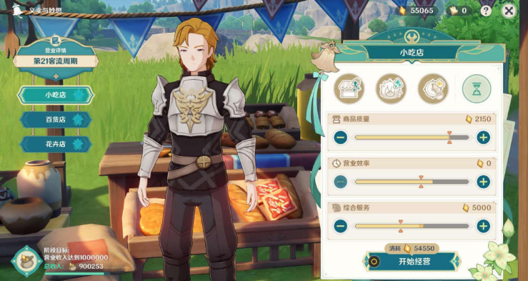21、小吃店:商品质量分配9350;营业效率分配0;综合服务分配550。