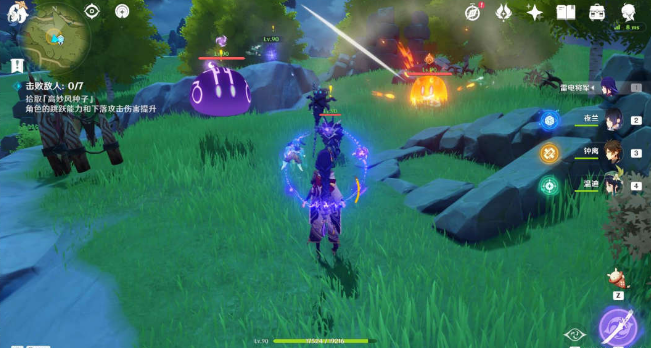 2、第二处:7只。(雷火)史莱姆、丘丘人和狂风之核。