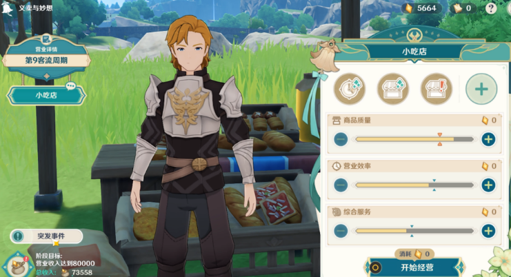 9、小吃店:商品质量分配4450;营业效率分配0;综合服务分配450。