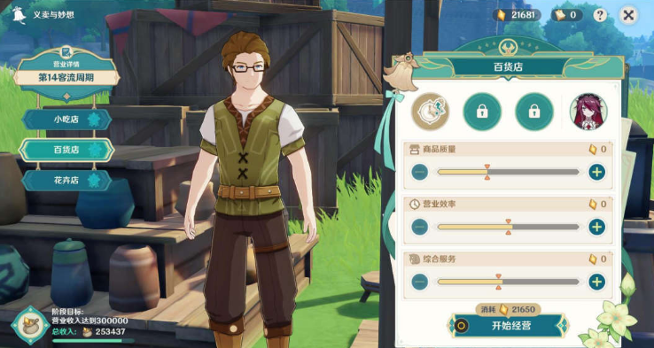 21、小吃店:商品质量分配9350;营业效率分配0;综合服务分配550。