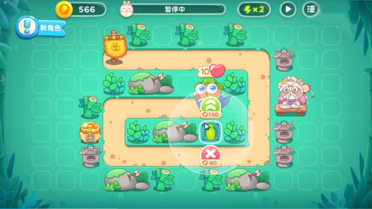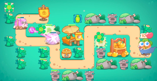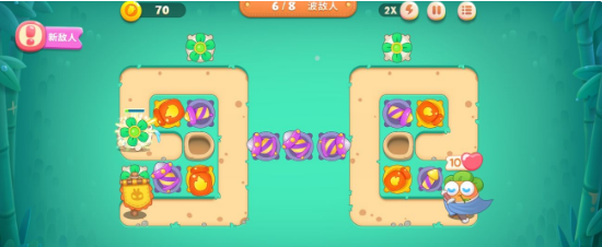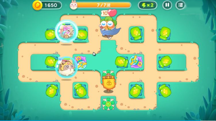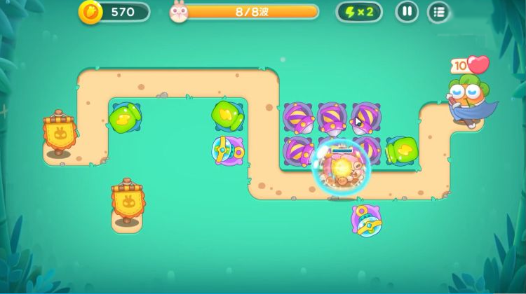 2、将宝箱清理掉,我们就能够得到两个泡泡塔了,泡泡塔可以帮助我们去减速兔兔。