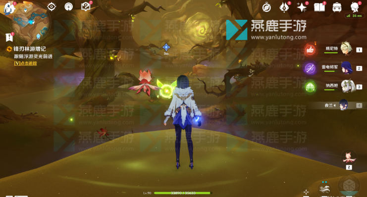 1、完成[彼时漫天异彩],自动接取任务[锋刃林游增记]。根据指引,来到锚点西方,跟随浮游灵光前进。>>彼时满天异彩攻略