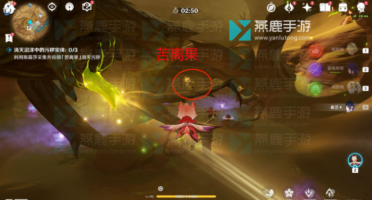 4、利用斯露莎对准污秽投掷「苦离果」,点按Q进行投掷。