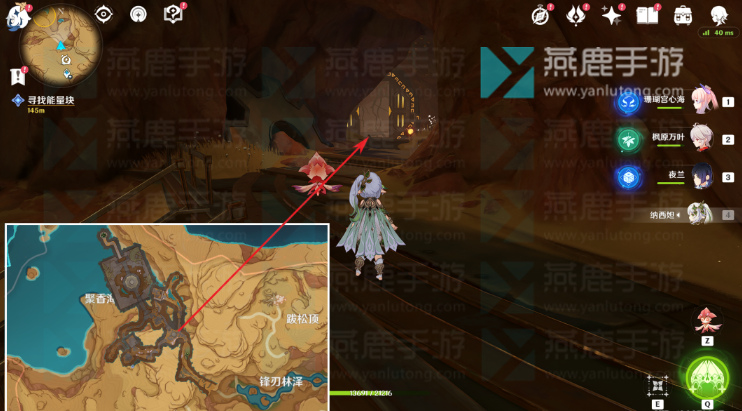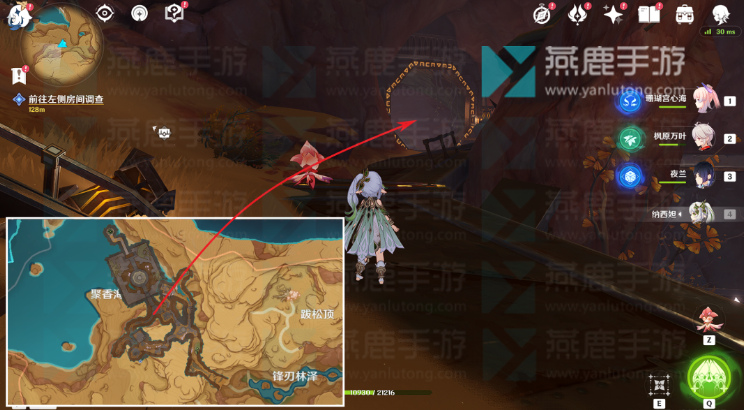 8、切换成斯露莎,来到「特殊的四叶印」旁边,点按E收集,然后再飞高一点,点按T放置。