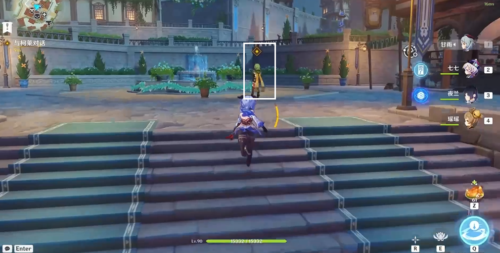 8、回到自己的视角,前往蒙德公告板附近。