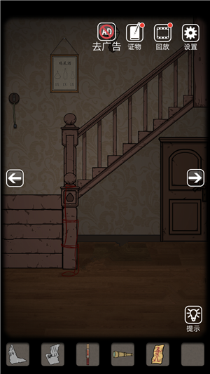 6、来到电视机场景,打开第一个柜子获得带血的刀。回到楼梯,用刀划开绳子,拿起符纸,再将大厅的灯打开,拿到鸡尾酒配方。