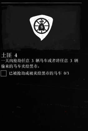一天内抢劫任意3辆马车或者将任意3辆偷来的马车卖给黑市。