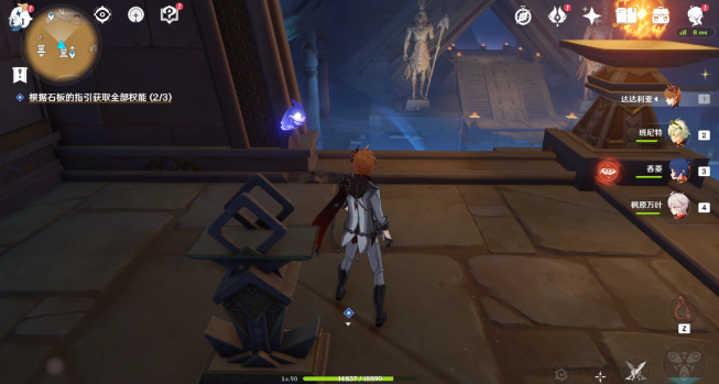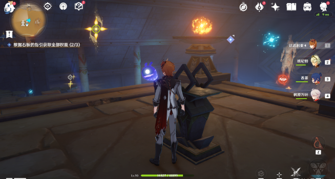 14、开启秘仪台座,关闭风场,往地图的南方向走,释放并追随元能火种一,激活元能火炬一。