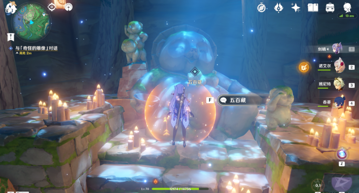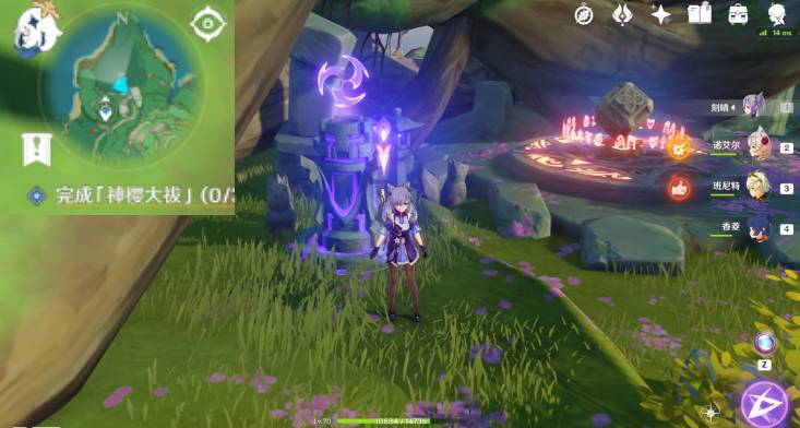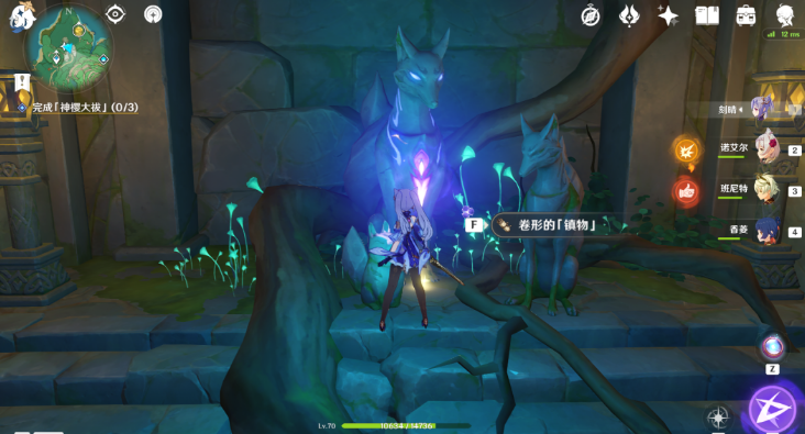 1、使用雷角色,攻击狐狸神像触发任务;