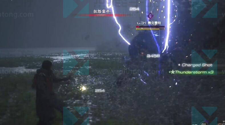 5、当他使用猛力挥击时闪开然后使用雷系技能远距离攻击即可。