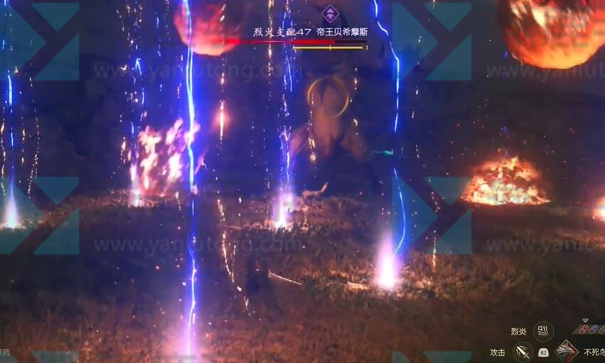 6、小心他的烈火支配技能,将会对视角以内的地面都带来火焰伤害,要及时躲避。