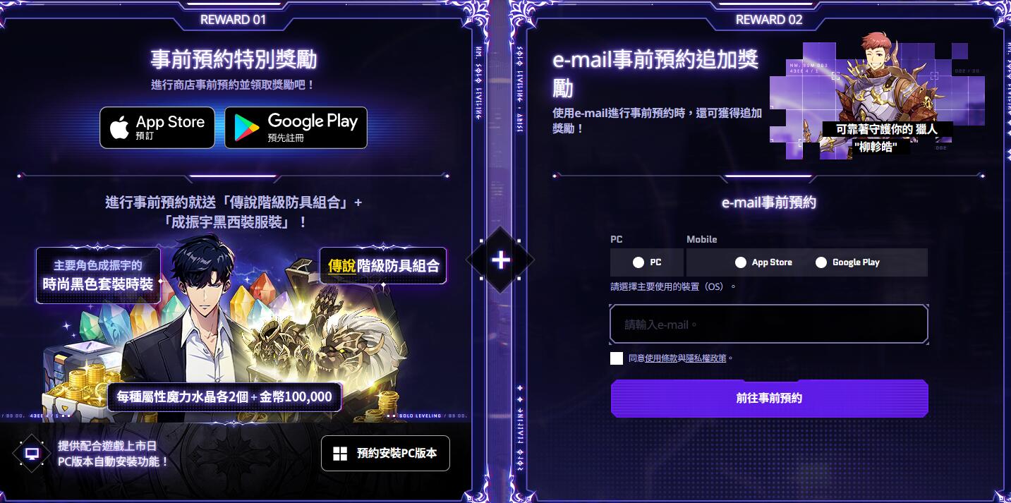 1、官网提供App Store与Google Play预约通道,玩家可轻松完成注册。同时支持通过邮箱在PC端进行预约,方便快捷。