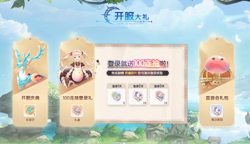 2、开服期间将赠送丰厚礼包,例如强力坐骑杜涅尔以及100连抽奖励,助力玩家畅享游戏乐趣。