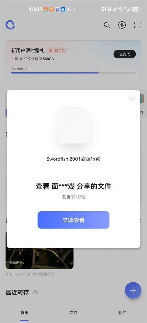 复制分享链接,打开阿里云盘APP,系统自动识别链接内容。