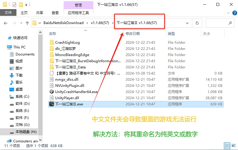 2. 游戏存放路径不宜过深,建议放在硬盘根目录下。