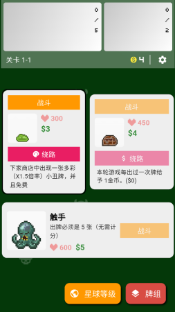 每轮共8个关卡,每个关卡包含两个精英怪和一个Boss。您可通过“战斗”获胜获取金币购买道具,或选择“绕路”获得临时增益。Boss无法绕过且会施加Debuff。出牌时最多使用5张组成特定牌型(如炸弹、葫芦、同花等),根据筹码×倍率计算伤害。出牌后若未击杀敌人,将受到1点伤害,血量归零则游戏结束。
